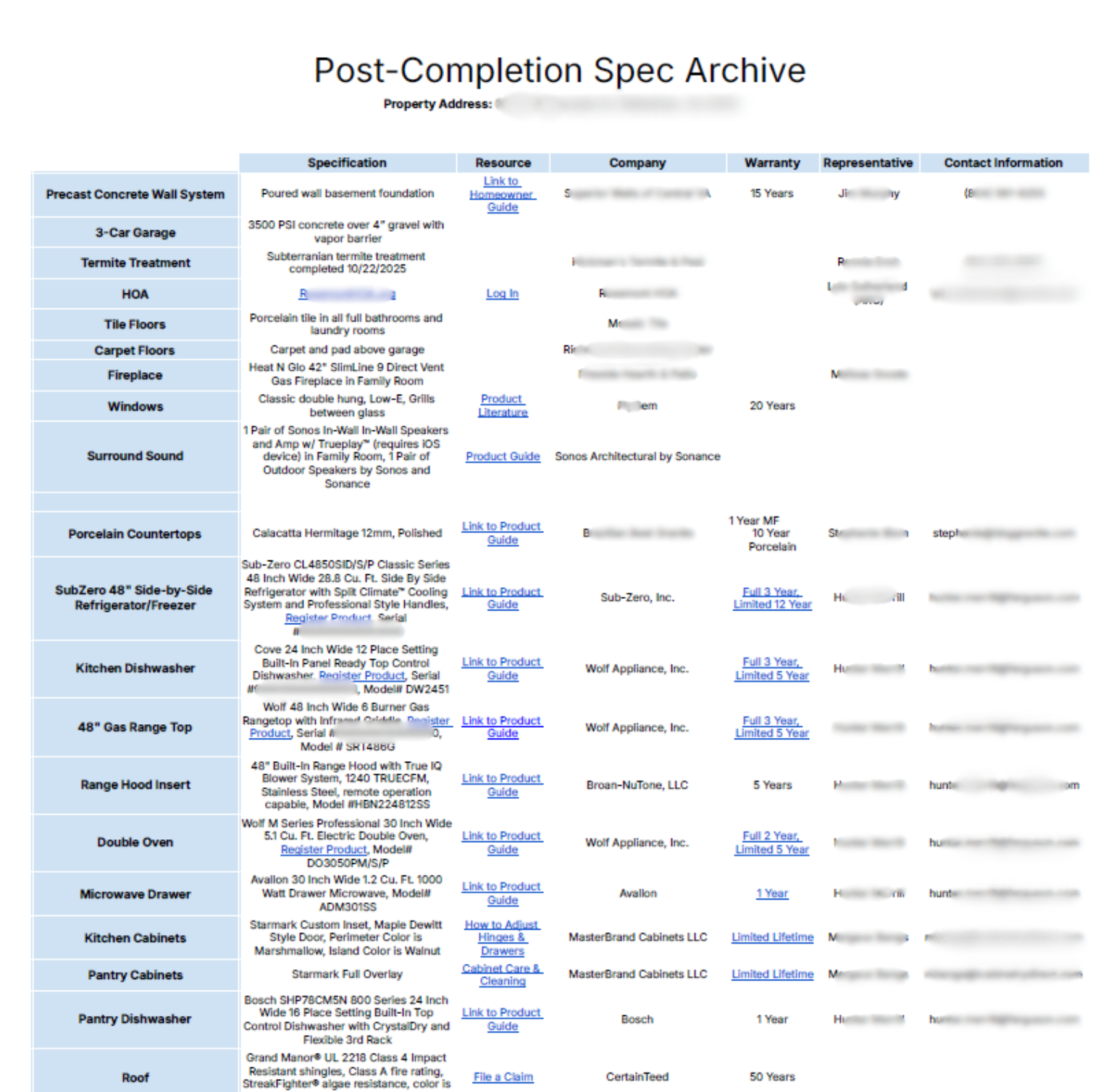 This document reflects the final selections at the time of completion, including any approved substitutions or changes made during construction. It serves as a reliable reference for ownership, maintenance, warranty inquiries, and future improvements.