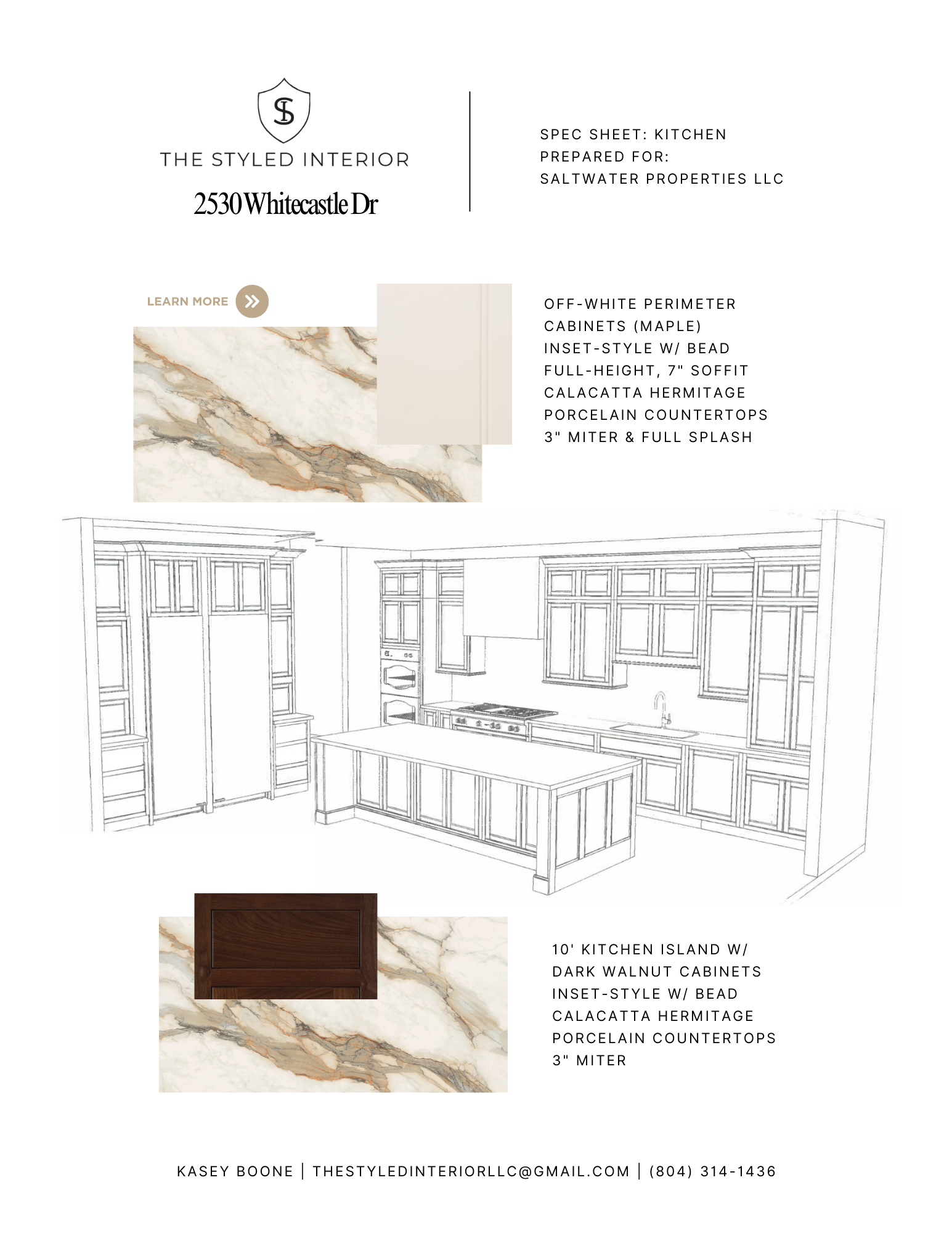 A comprehensive, internal-facing specification document that helps renovation and new construction teams select materials with confidence. This spec sheet consolidates all material, finish, and fixture selections into one clear, build-ready document. It provides the level of detail required for teams to accurately source and order materials.